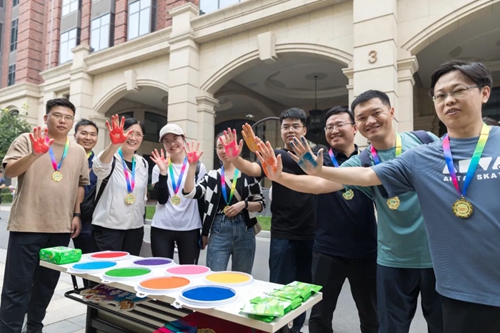 最后,集團(tuán)領(lǐng)導(dǎo)為各隊(duì)發(fā)放了紀(jì)念獎(jiǎng)牌,大家接過獎(jiǎng)牌,在手印墻按下了共同奮斗的印記,榮譽(yù)感和成就感溢于言表,“奮斗吧,城發(fā)人”的共識(shí)深深印刻在全員心中。