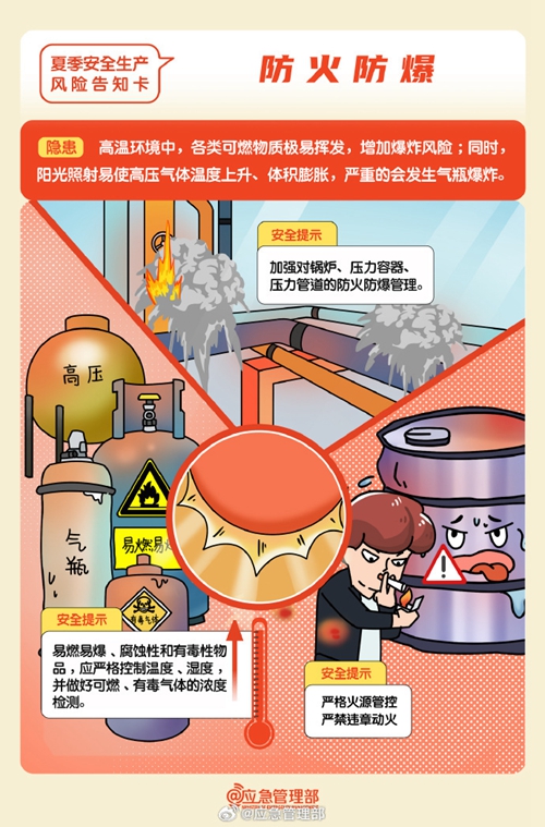 高溫天氣下安全生產(chǎn)工作要關(guān)注哪些風(fēng)險(xiǎn)隱患?如何防范?這組風(fēng)險(xiǎn)告知卡請查收↓↓↓