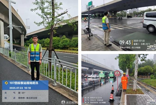 鄭州城建集團(tuán)子公司城投建工道路運(yùn)維項目及時部署防汛工作,投入大量人員、車輛及阻水板、反光錐等物資,明確防汛重點,在積水點,第一時間確保人員在崗值守。