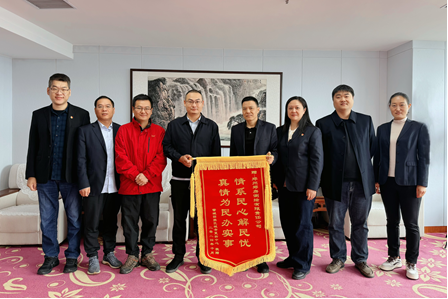 圖為鄭州鄭房測(cè)繪有限責(zé)任公司為群眾辦實(shí)事,群眾代表贈(zèng)予錦旗贊揚(yáng)。