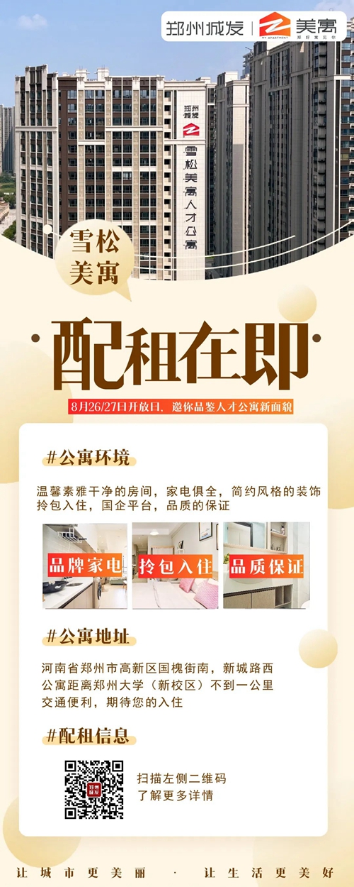 小學都開學了,各位畢業(yè)大學生是不是也都找到心儀的工作了?靈魂拷問——找到心儀的房子了么?押金難退、房租高貴、環(huán)境嘈雜夜不能寐......好房子不好找?城發(fā)美寓再放大招——雪松美寓新項目開業(yè)啦!