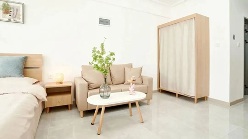 項(xiàng)目配備智能門鎖、獨(dú)立衛(wèi)浴、床、衣柜、書桌、洗衣機(jī)、空調(diào)、冰箱、抽煙機(jī)、晾衣架等。