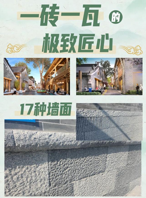在15個院落采用了17種墻面,其中僅有5種墻面采用了新磚,這不僅體現(xiàn)了對審美的高標(biāo)準(zhǔn),也反映了項目對材質(zhì)和施工工藝的嚴(yán)格要求。