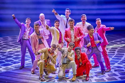 迪斯科風(fēng)格在《媽媽咪呀!》中無處不在。從音樂、舞蹈,到服裝設(shè)計,都給人以舞廳“蹦迪”的動感與歡樂體驗。而ABBA 樂隊熱情洋溢的曲風(fēng),轉(zhuǎn)化成希臘島嶼的陽光、沙灘,所有的金曲與熱舞也洋溢著地中海燦爛陽光下的積極與樂觀,猶如一首生命的贊歌。正如《星期日快報》的評價: