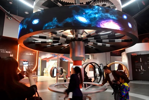 同時,這里以中國科學家、雙碳目標等社會熱點內(nèi)容,以鄭州市為主體提煉電力中樞、智慧電網(wǎng)等地方特色內(nèi)容,實現(xiàn)主題特色在內(nèi)容設計、空間規(guī)劃、形式創(chuàng)意中的多元融合。將抽象的知識通過電磁的故事、趣味性強的創(chuàng)意展項展示給觀眾,集互動參與、活動教育于一體的電磁主題科學空間,從而激發(fā)青少年的好奇心、探究力、創(chuàng)造力,引導青少年“像科學家一樣”去提問、探索、試錯、分析。