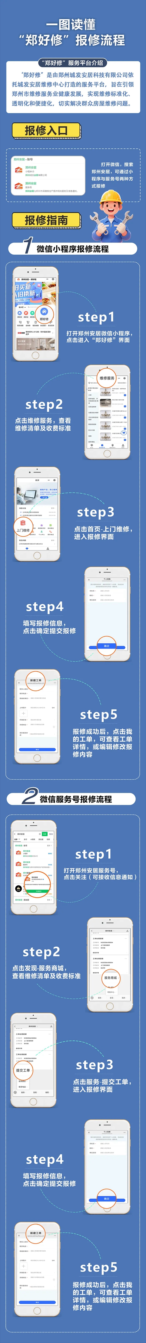為切實解決群眾房屋維修難題,推動鄭州市維修服務(wù)業(yè)邁向標(biāo)準(zhǔn)化、透明化、便捷化發(fā)展新征程,由鄭州城發(fā)集團(tuán)下屬子公司鄭州城發(fā)安居科技有限公司精心打造的“鄭好修”服務(wù)平臺,正式上線運(yùn)營。市民通過鄭州安居微信小程序、鄭州安居微信服務(wù)號,即可輕松實現(xiàn)一鍵報修,享受優(yōu)質(zhì)高效的房屋維修服務(wù)。