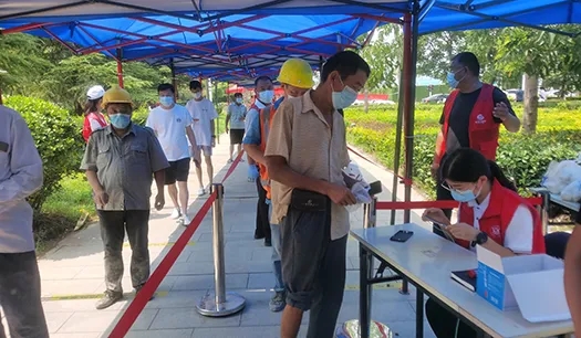 由于龍湖社區(qū)內(nèi)工地數(shù)量多,人員流動性大,檢測人群普遍年齡偏大,給檢測工作著實帶來一定難度。尤其是有一位工友,左腿受傷骨折,打著石膏拄著拐杖來做檢測,他沒有拿身份證且隨行人員都不會熟練操作手機掃碼,但在志愿者的引導下,從帶領他走愛心通道、到協(xié)助錄入信息、幫助他們?nèi)私仄亮舸嬉约白罱K完成檢測,志愿者認真的工作態(tài)度得到了工友和社區(qū)工作者的高度贊揚。檢測期間,志愿小隊統(tǒng)一按照社區(qū)的調(diào)度安排,各司其職,專人專崗,一切行動聽指揮,做到了各環(huán)節(jié)專人負責和快速反饋,整體檢測工作快速有序的進行,僅在15日一天,社區(qū)就完成了4000余人次的檢測。來自龍湖社區(qū)的居民表示,第四次核酸檢測相較于前幾次效率明顯提高且秩序良好,從最初的半個小時以上到現(xiàn)在的幾分鐘,這不僅是效率質(zhì)變,更是廣大一線工作人員的付出心血,大家都非常感謝他們。