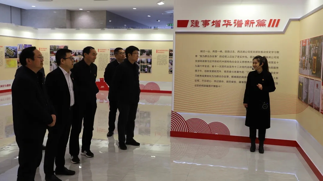 第二站,指導(dǎo)組一行參觀了金岱科創(chuàng)城商務(wù)服務(wù)中心,詳細(xì)了解了金岱科創(chuàng)城核心板塊、商代王城遺址核心板塊及小李莊火車站核心板塊的規(guī)劃建設(shè)情況。隨后實(shí)地觀摩了西流湖公司黨支部黨史學(xué)習(xí)教育“我為群眾辦實(shí)事”主題展,對(duì)西流湖公司黨支部助推金岱迭代升級(jí)、全力打通“斷頭路”、打造精品安置房、積極投身防汛搶險(xiǎn)疫情防控一線等踐行“八心”服務(wù)、為群眾辦實(shí)事好事的一系列工作舉措給予了高度評(píng)價(jià)和充分肯定。