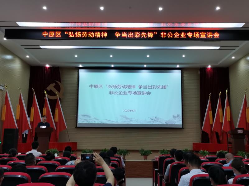 為充分發(fā)揮中原新區(qū)聯(lián)合黨委基層黨校在黨的理論教育上的主陣地作用和在黨性教育上的大熔爐作用,在黨校中弘揚習(xí)近平總書記給圓方集團職工的重要回信精神,真正使聯(lián)合黨委基層黨校成為黨員干部思想政治教育的紅色殿堂,6月5日和9日,中原區(qū)“弘揚勞動精神 爭當(dāng)出彩先鋒”企業(yè)、班組專場及非公企業(yè)專場宣講會在中原新區(qū)聯(lián)合黨委基層黨校舉行,中原區(qū)委組織部組織科科長蔚光勛、西流湖公司副總經(jīng)理昌磊出席活動,共有來自中原區(qū)各街道辦事處、各企業(yè)的150余名黨員職工聆聽了宣講。